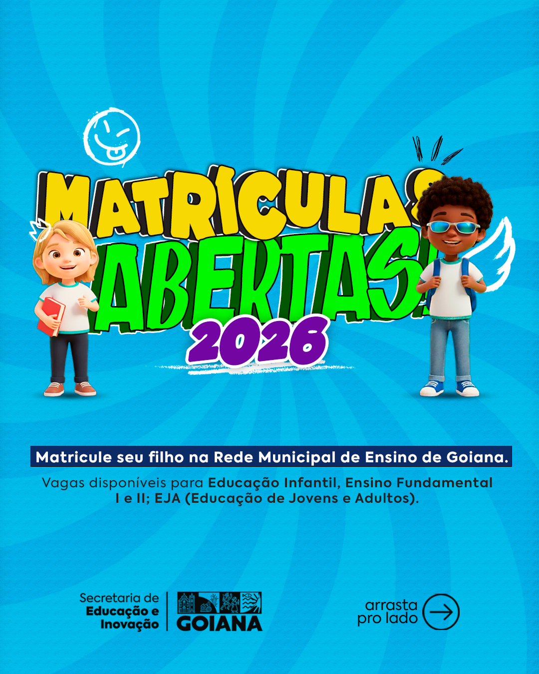 Da redação SECEDI Matrículas devem ser realizadas na secretaria da escola a qual deseje vaga para estudar A Prefeitura de Goiana, por meio da Secretaria de Educação e Inovação, anuncia a abertura do período de matrículas para o ano letivo de 2026 na rede municipal de ensino. Estão disponíveis vagas para a Educação Infantil, Ensino...